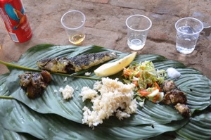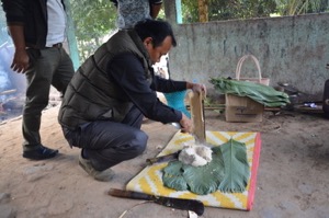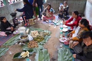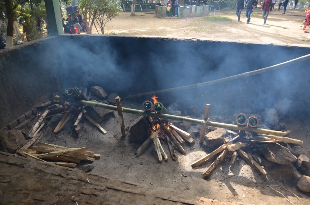 竹筒を使って、伝統的な方法でご飯を炊く。料理はバナナの葉の上に盛りつけられる。最高のおせち料理だ!