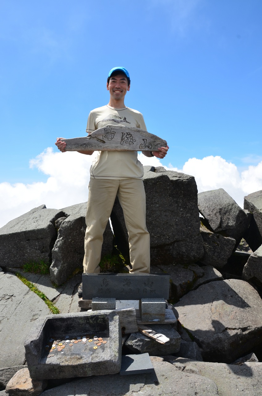 高山植物の咲き乱れる、岩でゴロゴロした道を登ってゆくと、七高山(2229m)の頂に躍り出た。