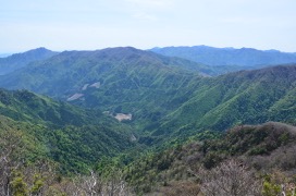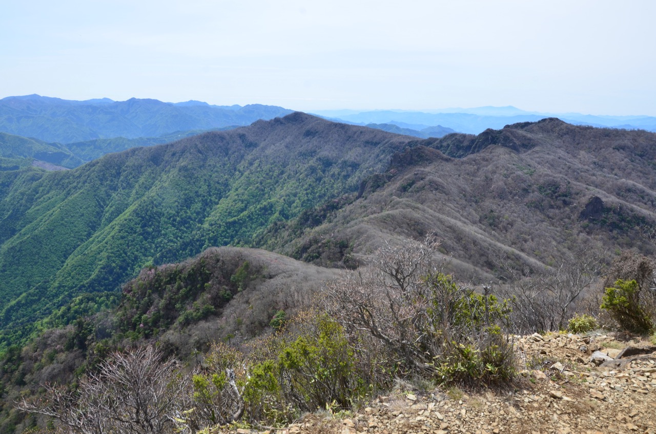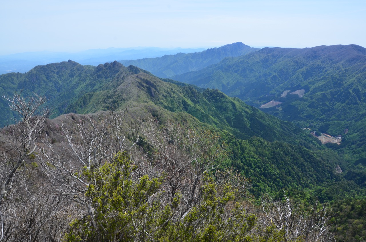 山頂より南東面:傾山への縦走路② 本谷山〜傾山、大崩山(右奥)
