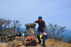 山頂からは360度の大展望、今まであまり見たことのない九州の山々が一望のもとだ。だがやっぱり、九州の山は低い。空気が澄んでいれば四国まで見渡せそうだが、遠方は霞んでよく見えない。