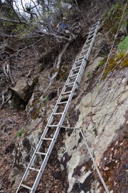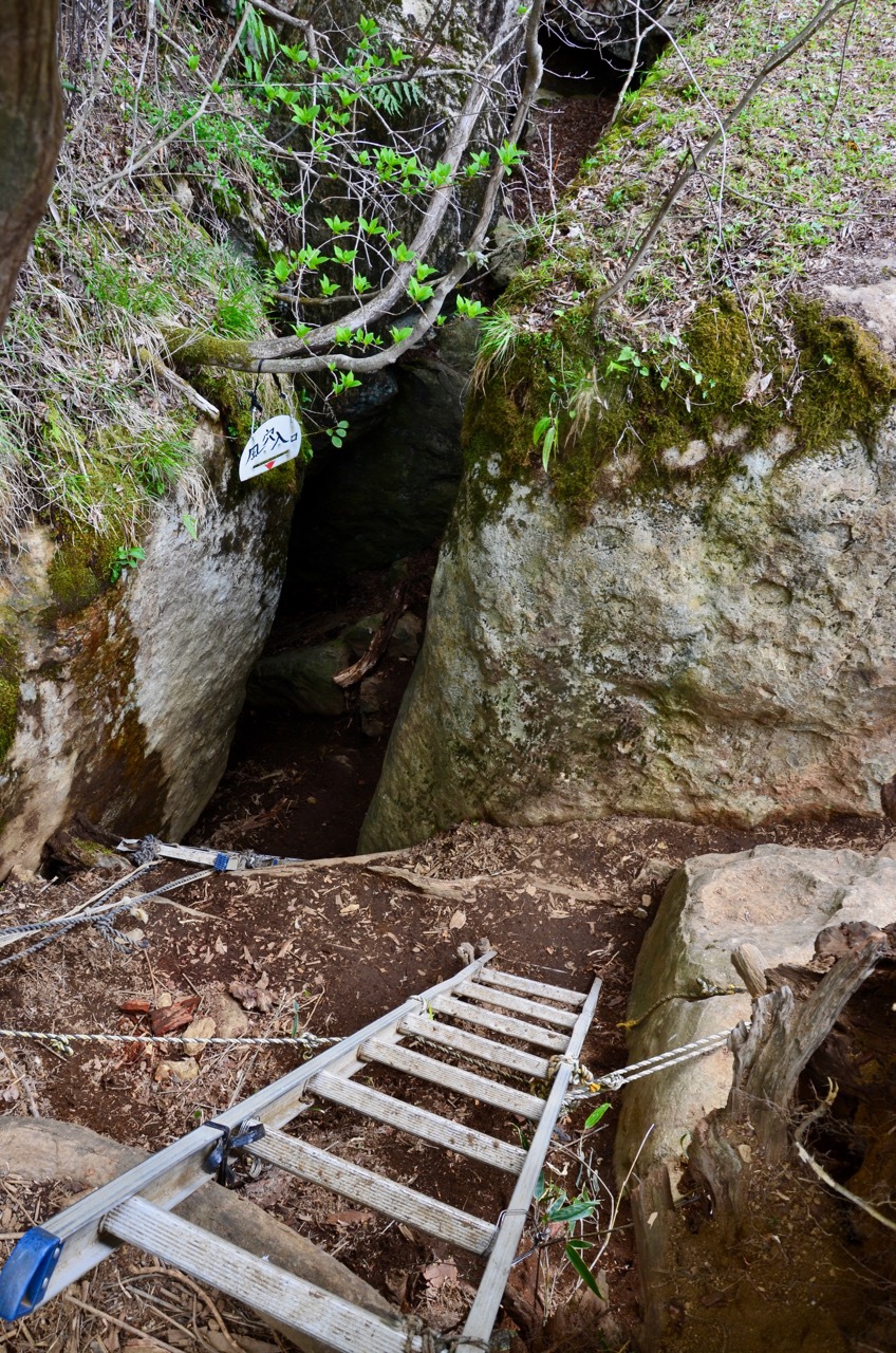 帰りは、風穴コースを下ることにする。梯子が連続する険しい道を慎重に下っていく。天気も下り坂だ。