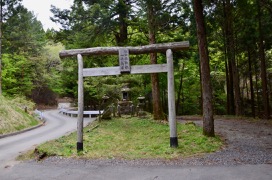 途中、開発から取り残されたように、「祖母嶽神社 一の鳥居」というのがあった。かつてはここが登山口だったのだろう。中途半端な車道なんか造らず、ここから歩き始めるようにすればいいのに。(一の鳥居からの登山道もあるようだが、ほとんど歩かれている形跡がない。)