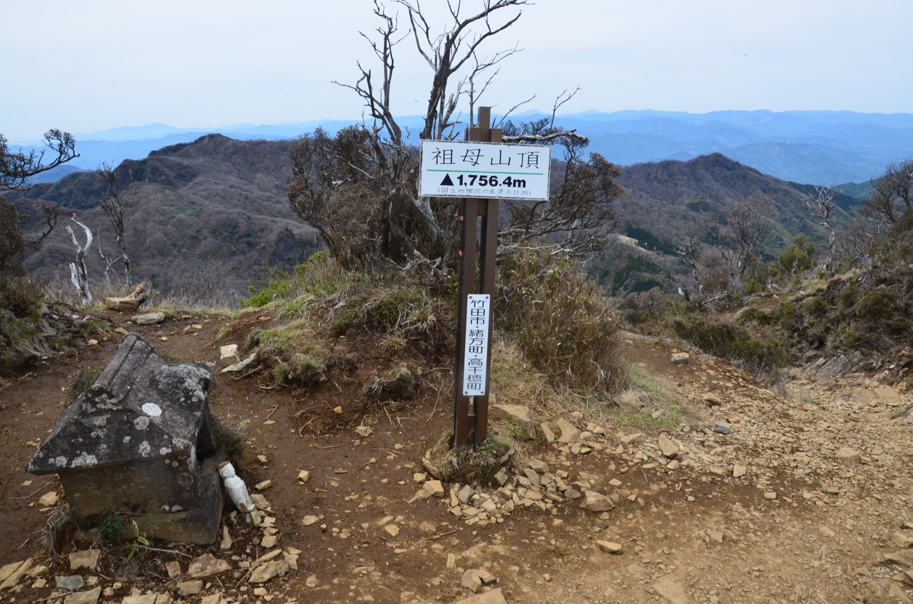 祖母、九重、阿蘇の展望が素晴らしいという触れ込みだったが、祖母以外の山は木々に隠れてあまり見えない。高千穂に泊まって祖母山に登る人はあまりいないだろうとタカを括っていたが、こんなところで油を売っている場合ではなかった。